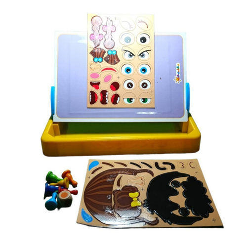 .جورچین ها همیشه از جذاب ترین سرگرمی ها برای کودکان هستند حالا اگه آهنربایی هم باشد جذابیتش دو چندان می شود و برای رشد چند جانبه کودکان یه محصول فوق العاده محسوب می شوند. با کمک این مجموعه بازی فکری می توانید حالت های بسیار متنوعی از چهره مانند خوشحالی، ناراحتی و … بوجود آورید. تعدادی از این اشکال را می توانید بر روی جعبه مشاهده کنید و با الهام گرفتن از آنان چهره های بسیار گوناگونی بسازید. این محصول در شناخت و واکاوی محیط پیرامونی به کودکان کمک می کند. در عین حال، می توان حالتهای احساسی و هیجانی متفاوت را که مبنای هوش هیجانی است، با استفاده از قطعات متنوع این محصول درست کرد.