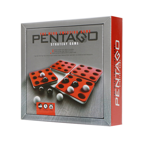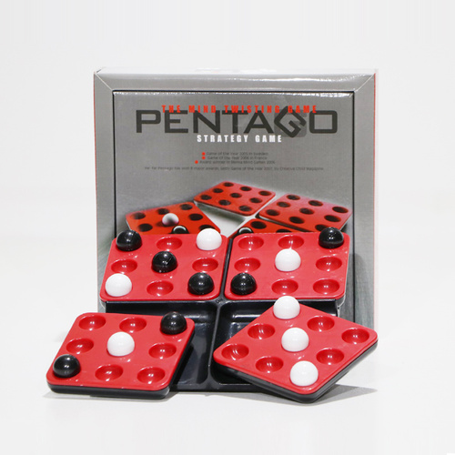 بازی پنتاگو 2 نفره شامل 36 مهره و یک صفحهی بازی با 4 قطعهی چرخان است. هر بازیکن به نوبت مهرهای را در صفحه قرار میدهد و سپس یکی از 4 قطعه را به دلخواه 90 درجه (در جهت یا خلاف جهت حرکت عقربههای ساعت) می چرخاند. اولین بازیکنی که بتواند پنج مهره از مهرههایش را در راستای افقی یا عمودی یا اریب ردیف کند برنده است. سادگی روش یادگیری به همراه امکان پیگیری استراتژیهای پیشرفته در این بازی به علت وجود قائده چرخش صفحهها پس از هر حرکت باعث میشود تا همه از این بازی استراتژیک و انتزاعی لذت ببرند. پنتاگو چند سال پیاپی به عنوان بهترین بازی سال در کشورهای مختلف برگزیده شده است.